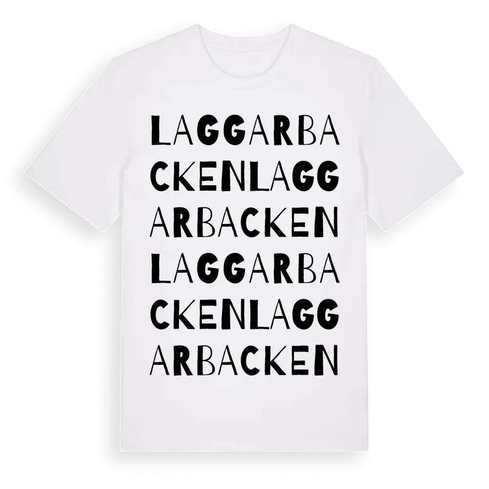 Laggarbacken ordlek t-shirt är inspirerad av Laggarbacken i Uppsala län, Sverige. Tröjan är designad för dig som har en speciell koppling till platsen – oavsett om du bor här, har rötterna här eller bara älskar Laggarbacken.