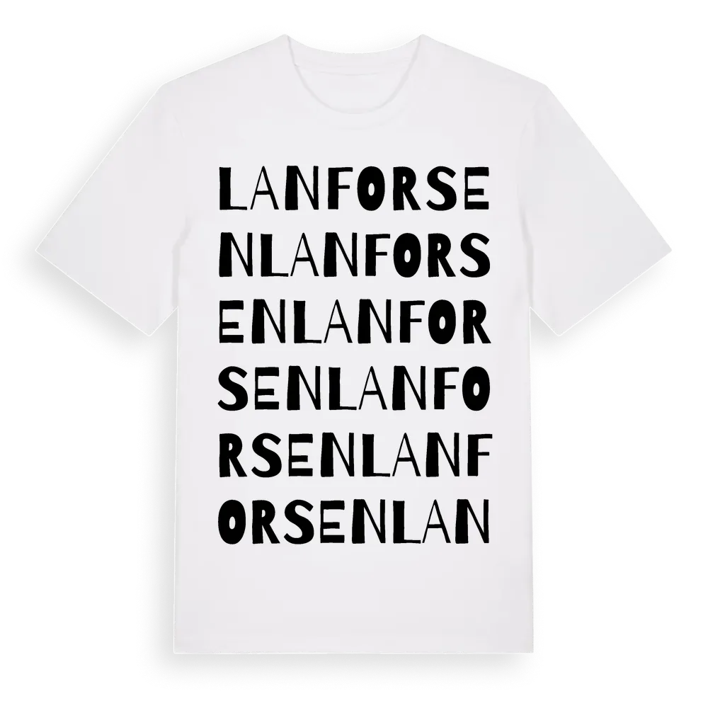 Lanforsen ordlek t-shirt är inspirerad av stadsdelen Lanforsen i Uppsala län, Sverige. Tröjan är designad för dig som har en speciell koppling till platsen – oavsett om du bor här, har rötterna här eller bara älskar Lanforsen.