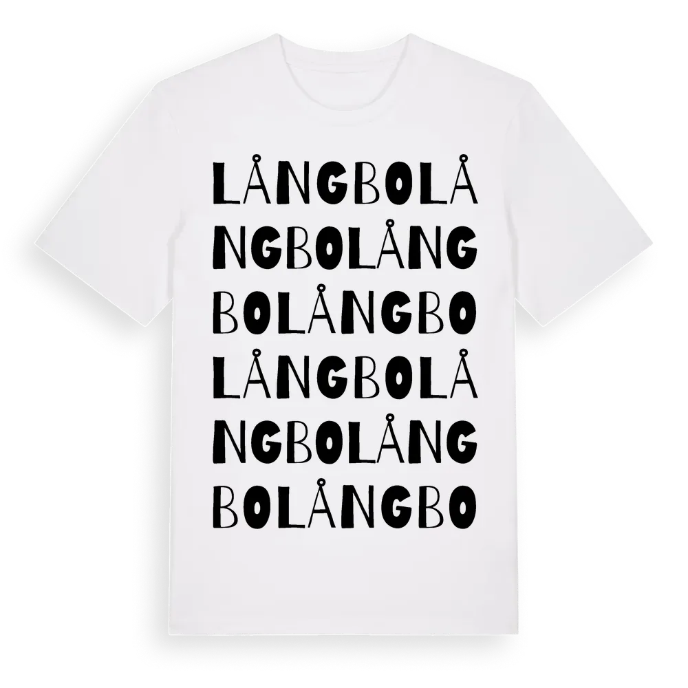 Långbo ordlek t-shirt är inspirerad av Långbo i Uppsala län, Sverige. Tröjan är designad för dig som har en speciell koppling till platsen – oavsett om du bor här, har rötterna här eller bara älskar Långbo.