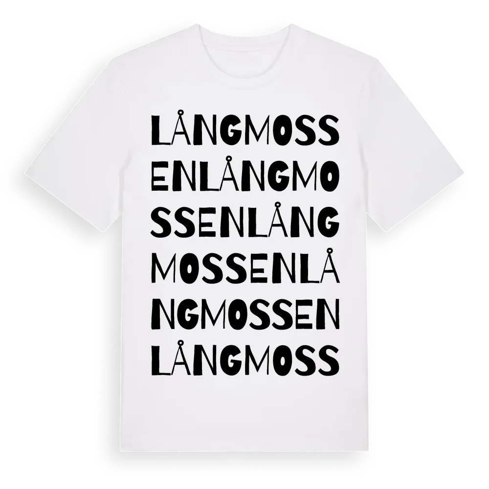 Långmossen ordlek t-shirt är inspirerad av Långmossen i Uppsala län, Sverige. Tröjan är designad för dig som har en speciell koppling till platsen – oavsett om du bor här, har rötterna här eller bara älskar Långmossen.