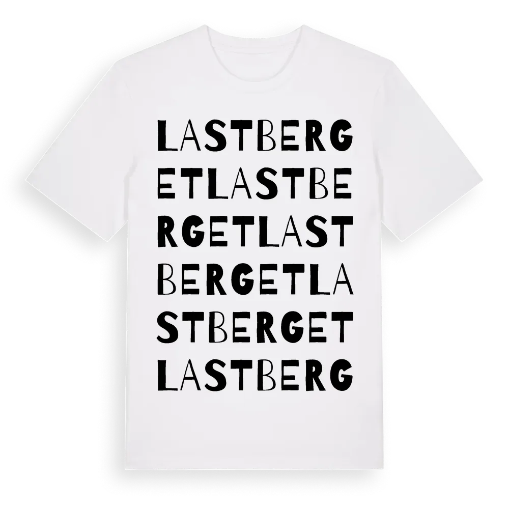 Lastberget ordlek t-shirt är inspirerad av Lastberget i Uppsala län, Sverige. Tröjan är designad för dig som har en speciell koppling till platsen – oavsett om du bor här, har rötterna här eller bara älskar Lastberget.