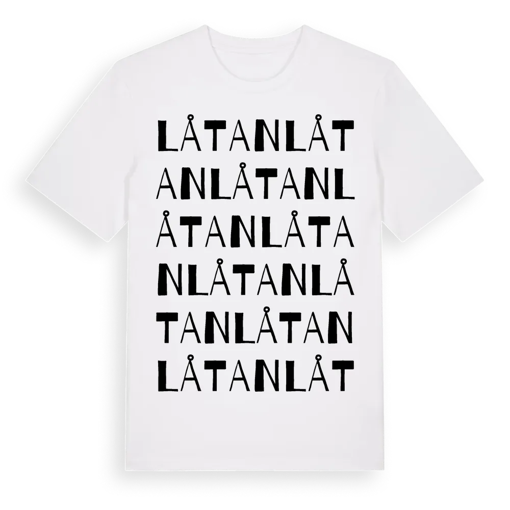 Låtan ordlek t-shirt är inspirerad av Låtan i Uppsala län, Sverige. Tröjan är designad för dig som har en speciell koppling till platsen – oavsett om du bor här, har rötterna här eller bara älskar Låtan.