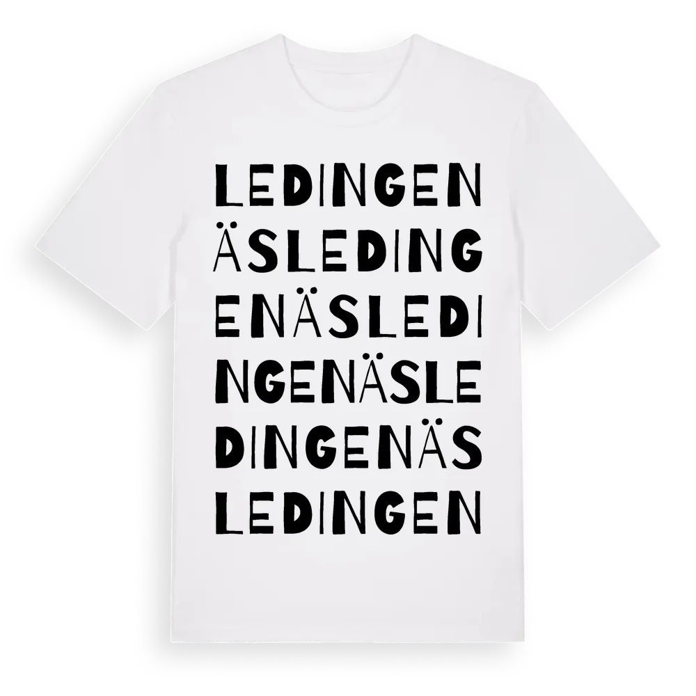 En ordlek byggd på Ledingenäss namn. Subtilt och klurig – ett motiv som bara de som verkligen känner platsen fullt ut förstår. Premium bomull, unisex – från Ledingenäs i Uppsala län.