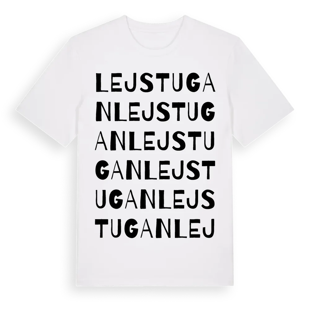 Lejstugan ordlek t-shirt är inspirerad av Lejstugan i Uppsala län, Sverige. Tröjan är designad för dig som har en speciell koppling till platsen – oavsett om du bor här, har rötterna här eller bara älskar Lejstugan.