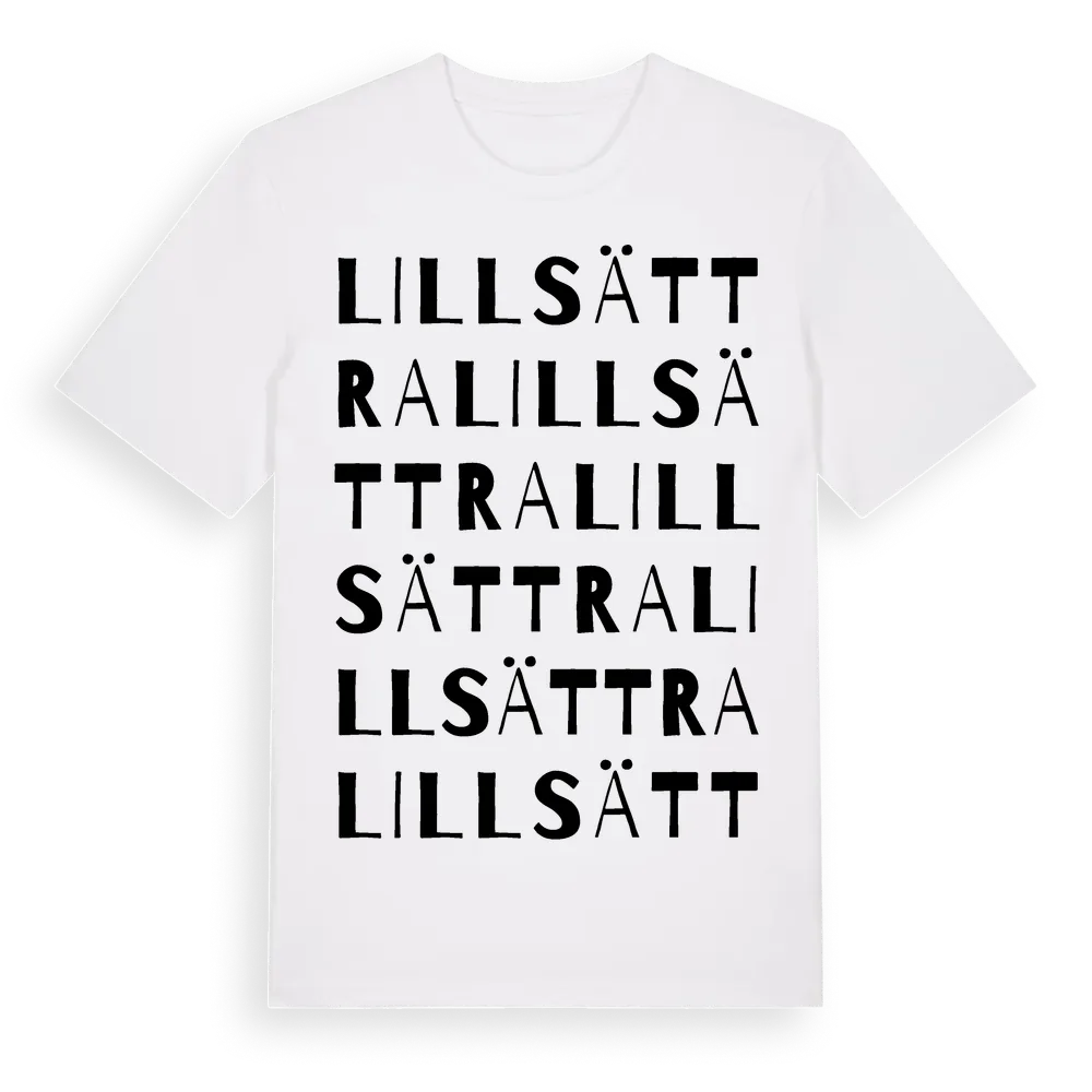 Lillsättra ordlek t-shirt är inspirerad av Lillsättra i Uppsala län, Sverige. Tröjan är designad för dig som har en speciell koppling till platsen – oavsett om du bor här, har rötterna här eller bara älskar Lillsättra.