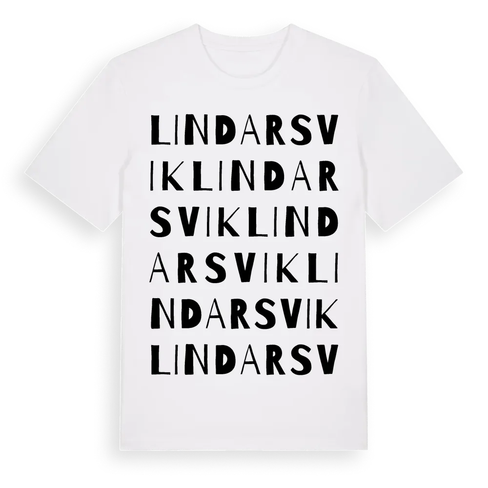 Lindarsvik ordlek t-shirt är inspirerad av Lindarsvik i Uppsala län, Sverige. Tröjan är designad för dig som har en speciell koppling till platsen – oavsett om du bor här, har rötterna här eller bara älskar Lindarsvik.