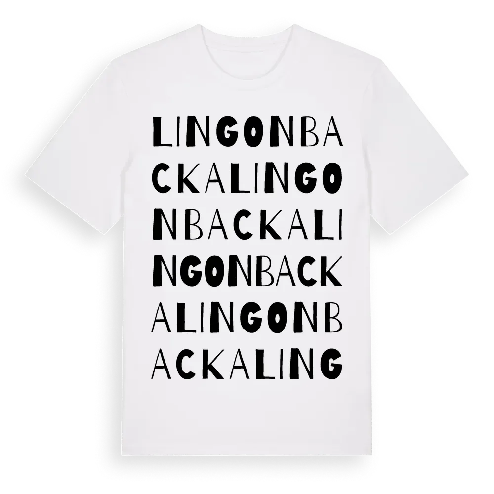 Lingonbacka ordlek t-shirt är inspirerad av Lingonbacka i Uppsala län, Sverige. Tröjan är designad för dig som har en speciell koppling till platsen – oavsett om du bor här, har rötterna här eller bara älskar Lingonbacka.