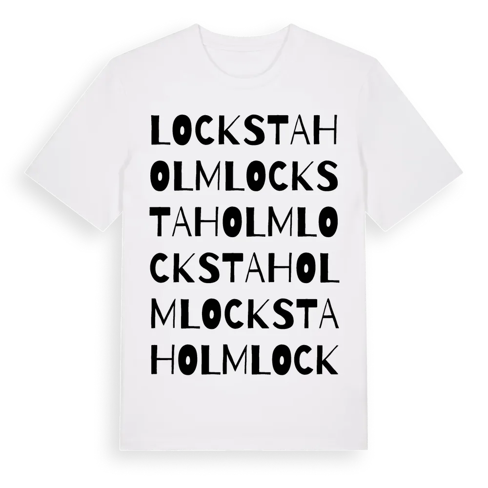 Lockstaholm ordlek t-shirt är inspirerad av Lockstaholm i Uppsala län, Sverige. Tröjan är designad för dig som har en speciell koppling till platsen – oavsett om du bor här, har rötterna här eller bara älskar Lockstaholm.