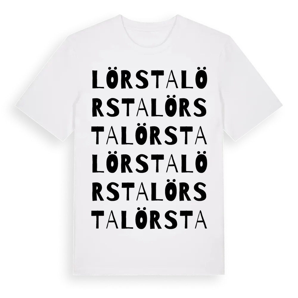 En ordlek byggd på Lörstas namn. Subtilt och klurig – ett motiv som bara de som verkligen känner platsen fullt ut förstår. Premium bomull, unisex – från byn Lörsta i Uppsala län.