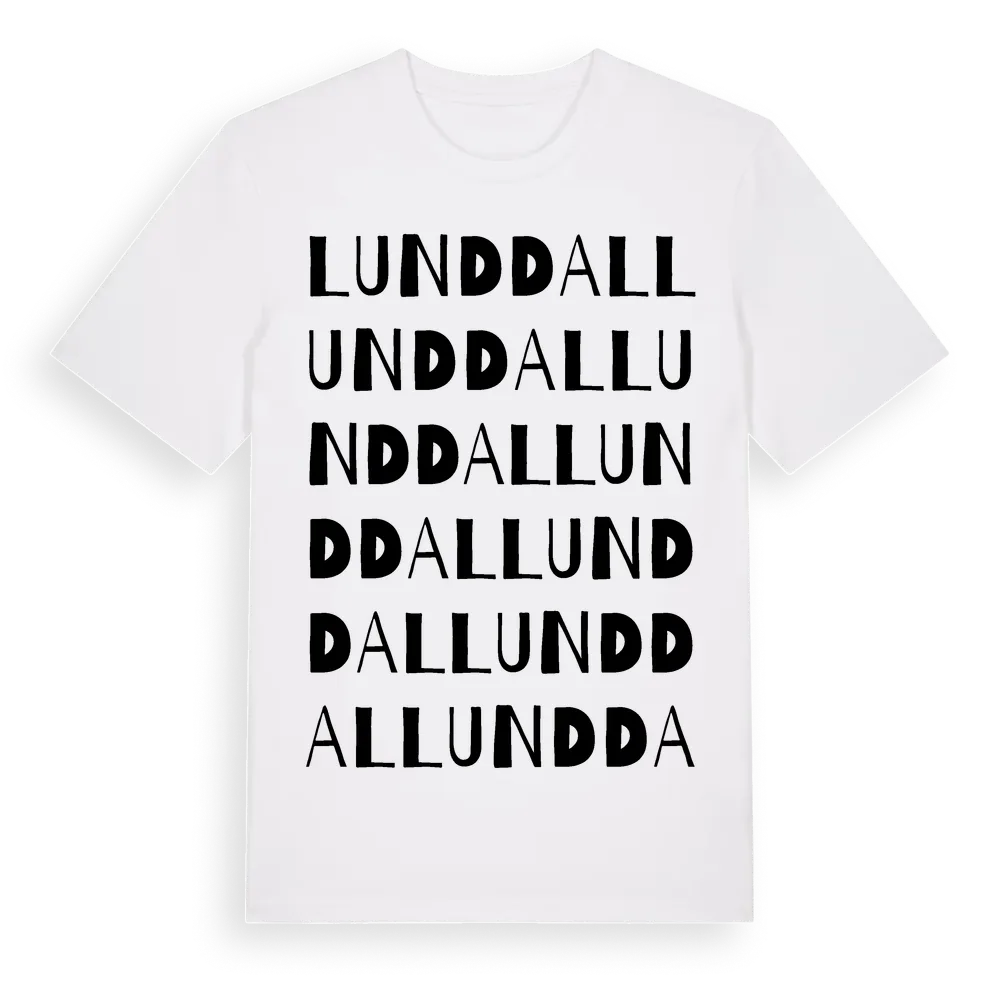 Lunddal ordlek t-shirt är inspirerad av Lunddal i Uppsala län, Sverige. Tröjan är designad för dig som har en speciell koppling till platsen – oavsett om du bor här, har rötterna här eller bara älskar Lunddal.