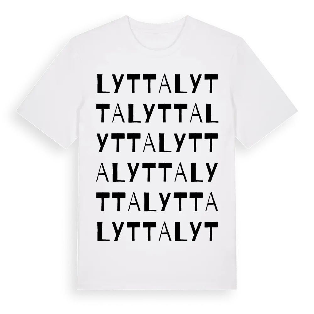 Lytta ordlek t-shirt är inspirerad av byn Lytta i Uppsala län, Sverige. Tröjan är designad för dig som har en speciell koppling till platsen – oavsett om du bor här, har rötterna här eller bara älskar Lytta.