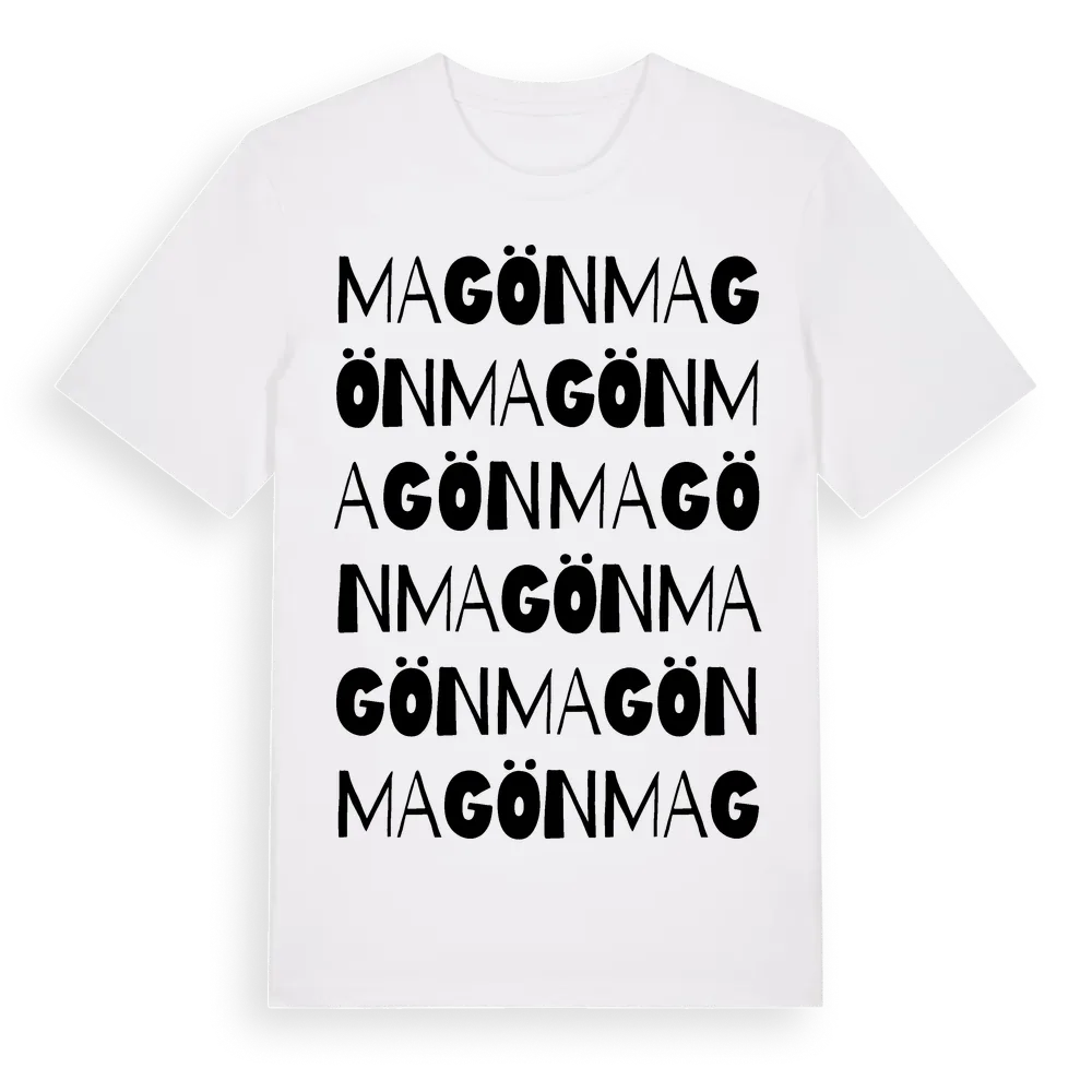 Magön ordlek t-shirt är inspirerad av Magön i Uppsala län, Sverige. Tröjan är designad för dig som har en speciell koppling till platsen – oavsett om du bor här, har rötterna här eller bara älskar Magön.