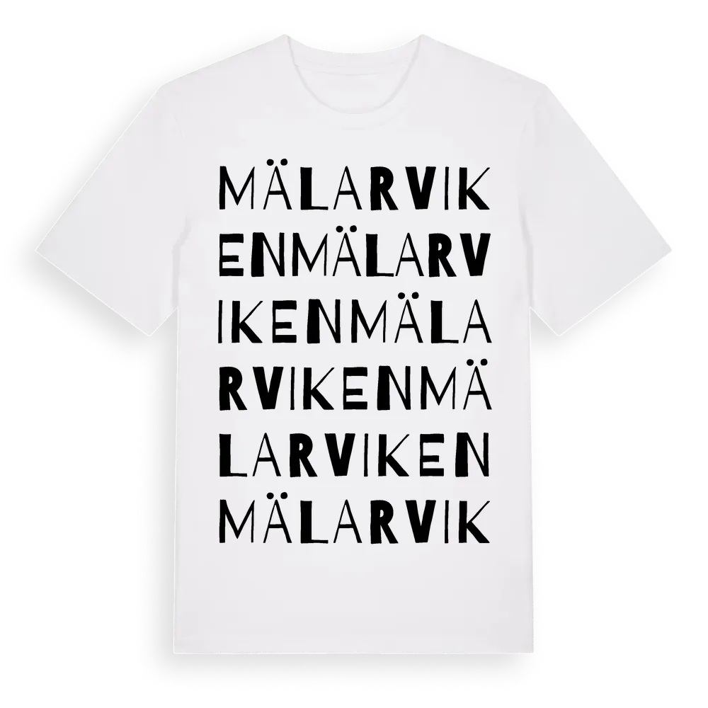 Mälarviken ordlek t-shirt är inspirerad av Mälarviken i Uppsala län, Sverige. Tröjan är designad för dig som har en speciell koppling till platsen – oavsett om du bor här, har rötterna här eller bara älskar Mälarviken.