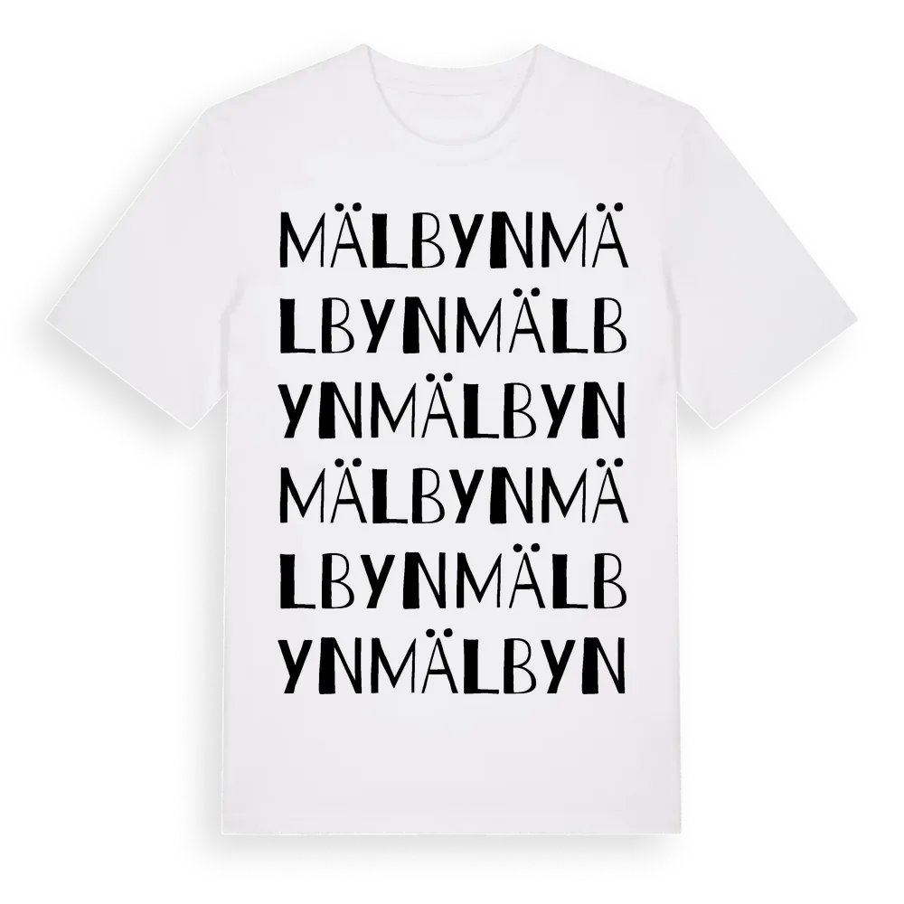 Mälbyn ordlek t-shirt är inspirerad av byn Mälbyn i Uppsala län, Sverige. Tröjan är designad för dig som har en speciell koppling till platsen – oavsett om du bor här, har rötterna här eller bara älskar Mälbyn.