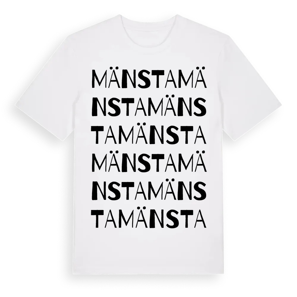 Mänsta ordlek t-shirt är inspirerad av Mänsta i Uppsala län, Sverige. Tröjan är designad för dig som har en speciell koppling till platsen – oavsett om du bor här, har rötterna här eller bara älskar Mänsta.