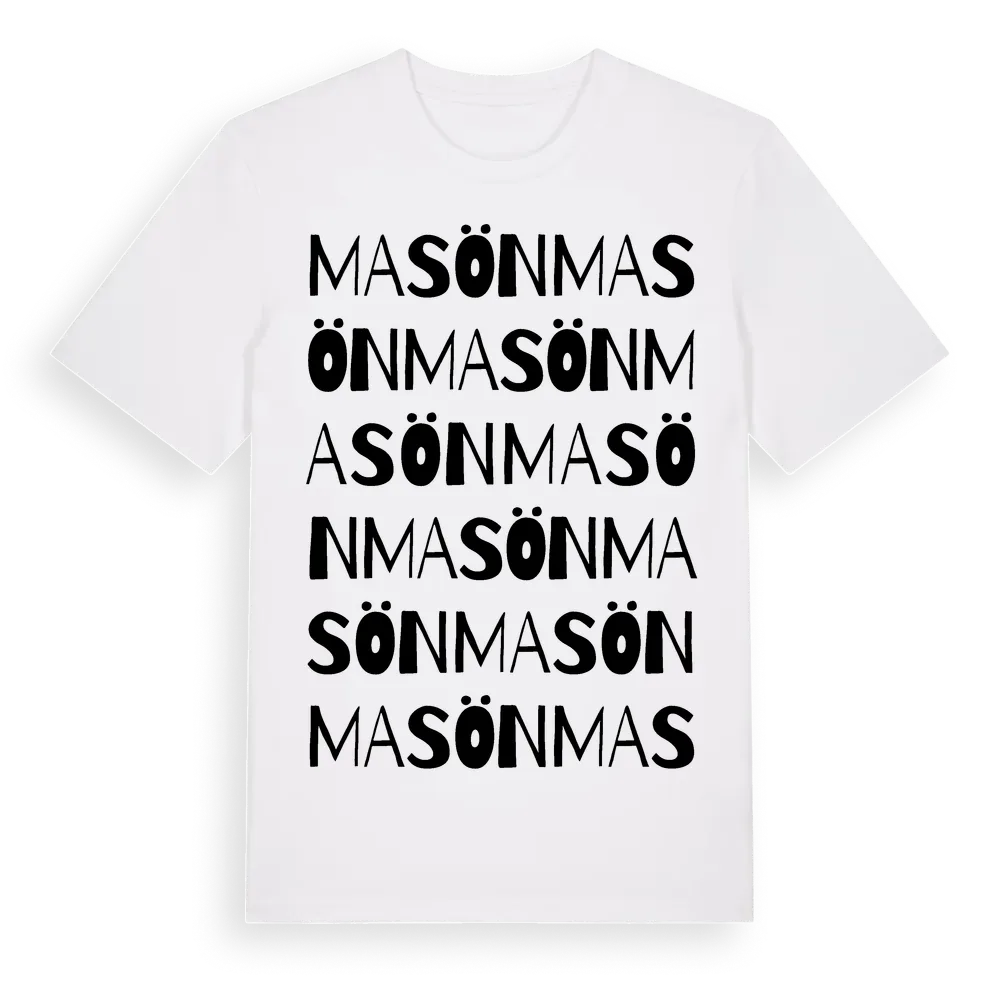 En ordlek byggd på Masöns namn. Subtilt och klurig – ett motiv som bara de som verkligen känner platsen fullt ut förstår. Premium bomull, unisex – från byn Masön i Uppsala län.