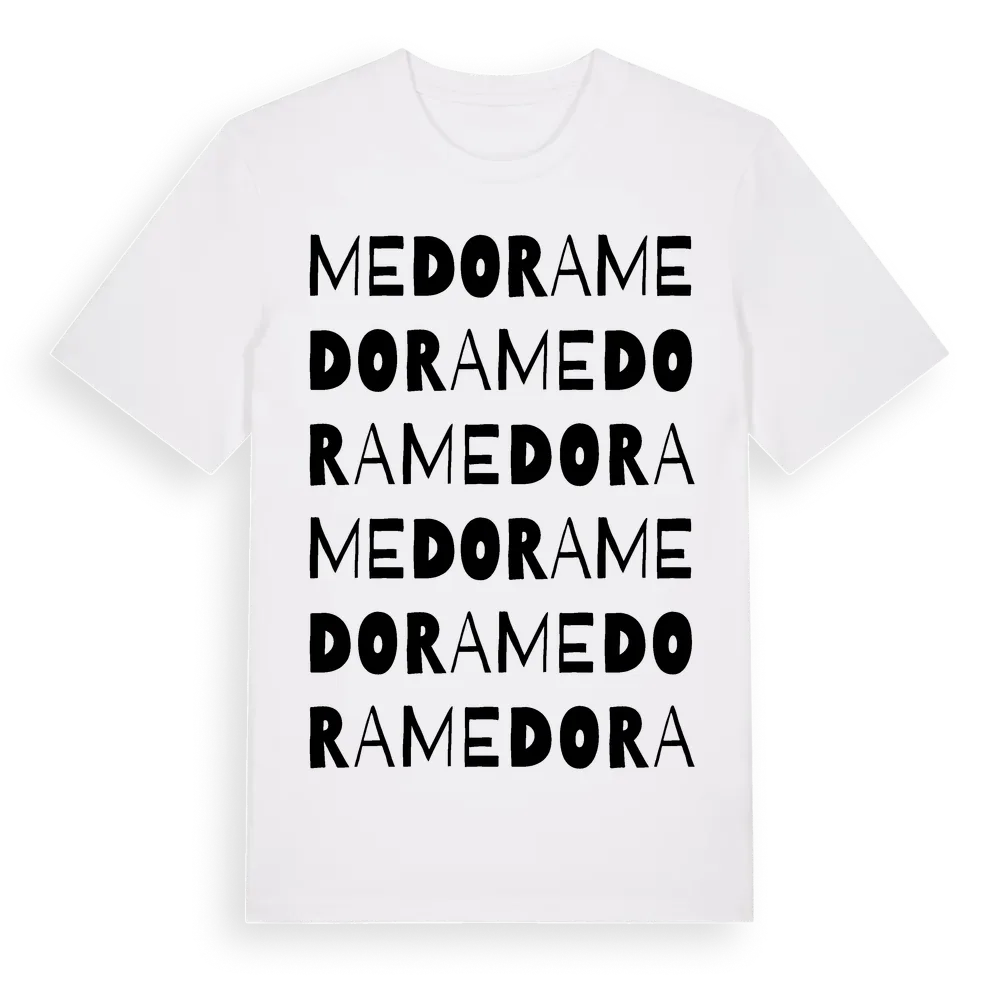 En ordlek byggd på Medoras namn. Subtilt och klurig – ett motiv som bara de som verkligen känner platsen fullt ut förstår. Premium bomull, unisex – från byn Medora i Uppsala län.