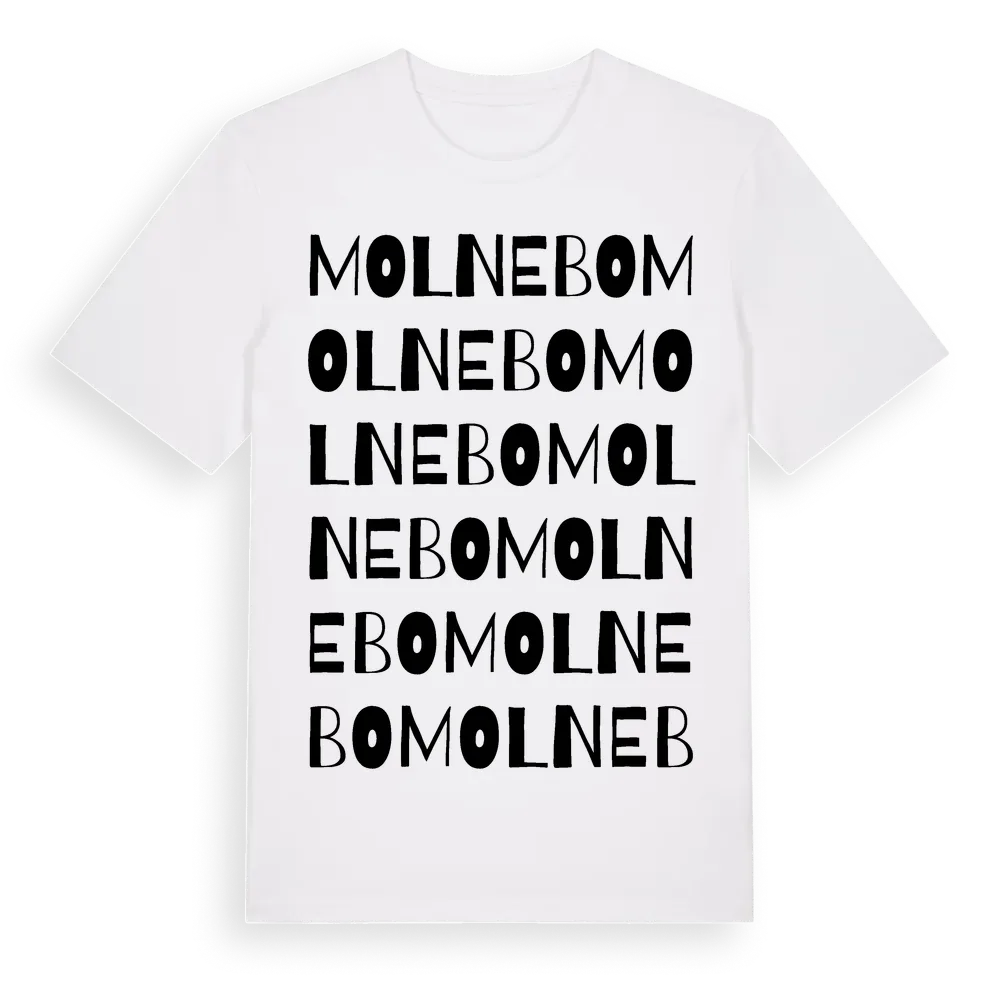 Molnebo ordlek t-shirt är inspirerad av byn Molnebo i Uppsala län, Sverige. Tröjan är designad för dig som har en speciell koppling till platsen – oavsett om du bor här, har rötterna här eller bara älskar Molnebo.