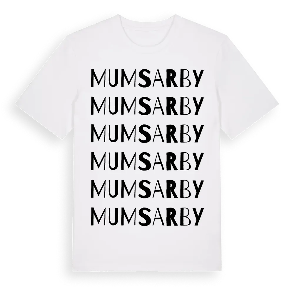 Mumsarby ordlek t-shirt är inspirerad av byn Mumsarby i Uppsala län, Sverige. Tröjan är designad för dig som har en speciell koppling till platsen – oavsett om du bor här, har rötterna här eller bara älskar Mumsarby.