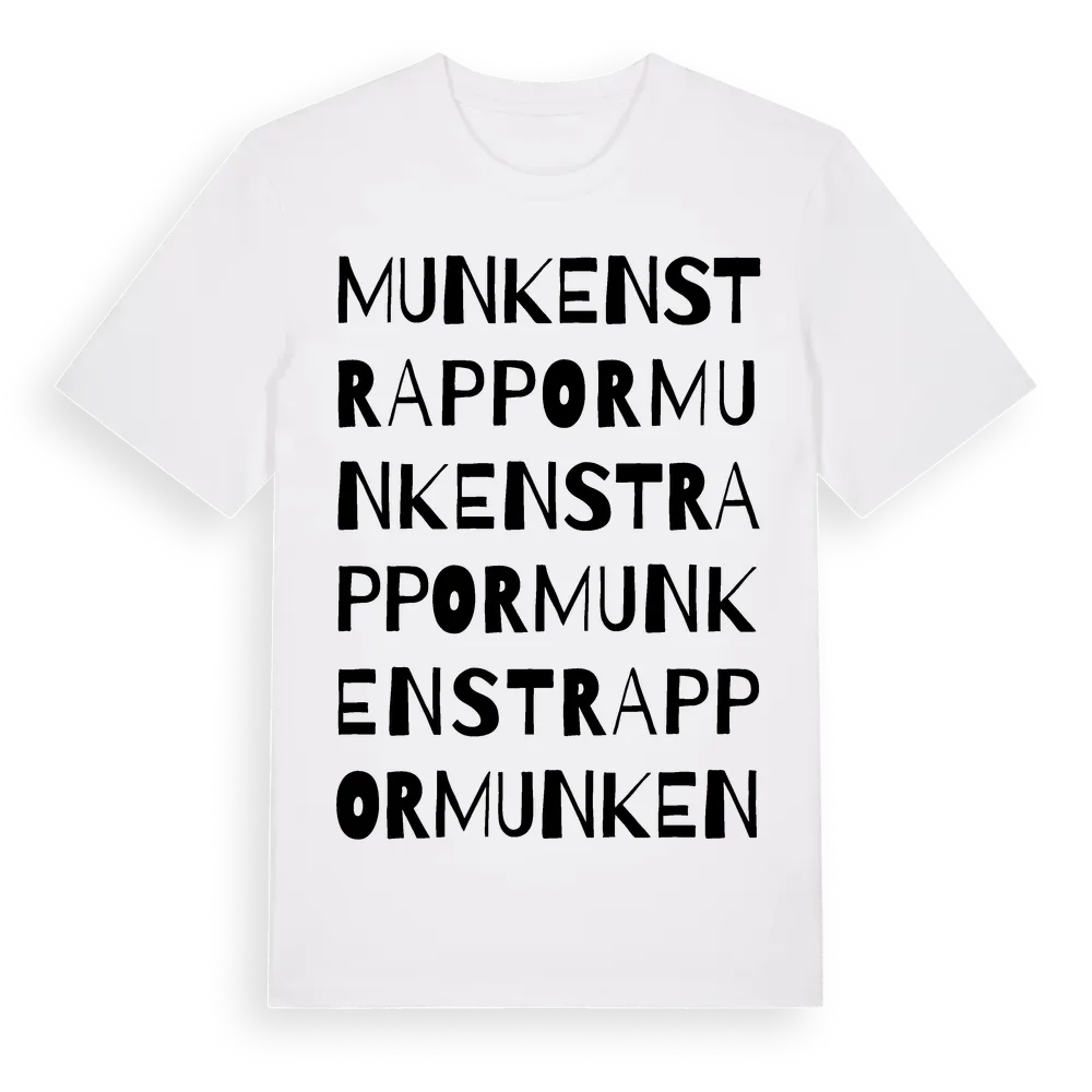 Munkens Trappor ordlek t-shirt är inspirerad av Munkens Trappor i Uppsala län, Sverige. Tröjan är designad för dig som har en speciell koppling till platsen – oavsett om du bor här, har rötterna här eller bara älskar Munkens Trappor.