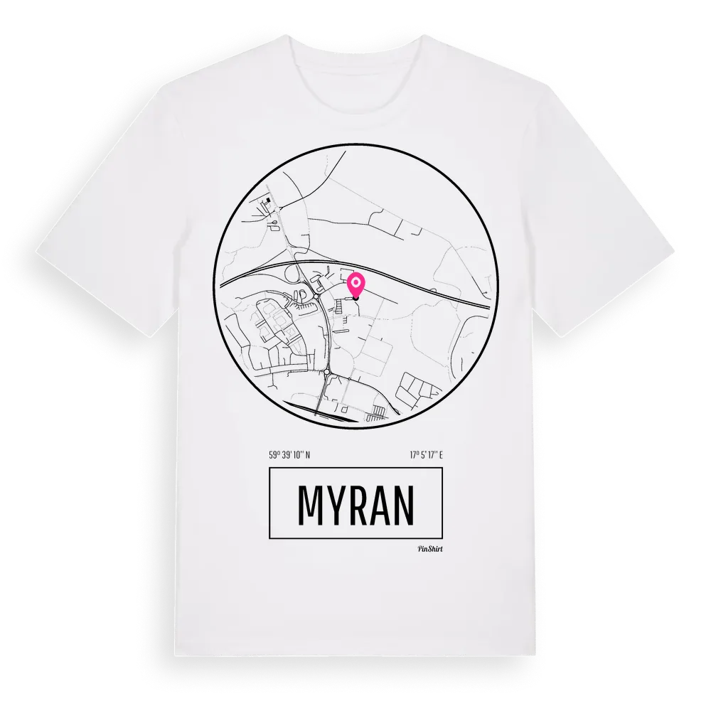 Myran t-shirt är inspirerad av stadsdelen Myran i Uppsala län, Sverige. Tröjan är designad för dig som har en speciell koppling till platsen – oavsett om du bor här, har rötterna här eller bara älskar Myran.