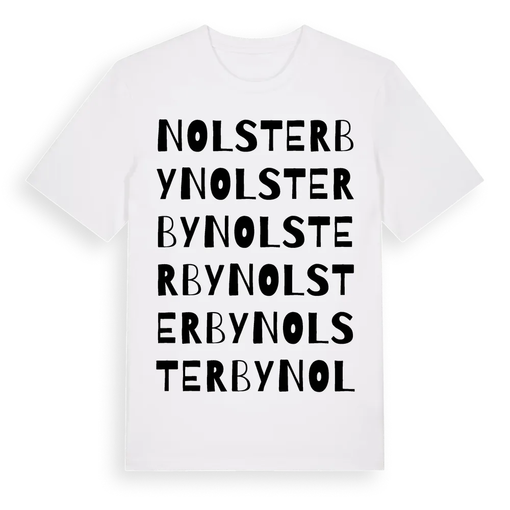 Nolsterby ordlek t-shirt är inspirerad av byn Nolsterby i Uppsala län, Sverige. Tröjan är designad för dig som har en speciell koppling till platsen – oavsett om du bor här, har rötterna här eller bara älskar Nolsterby.