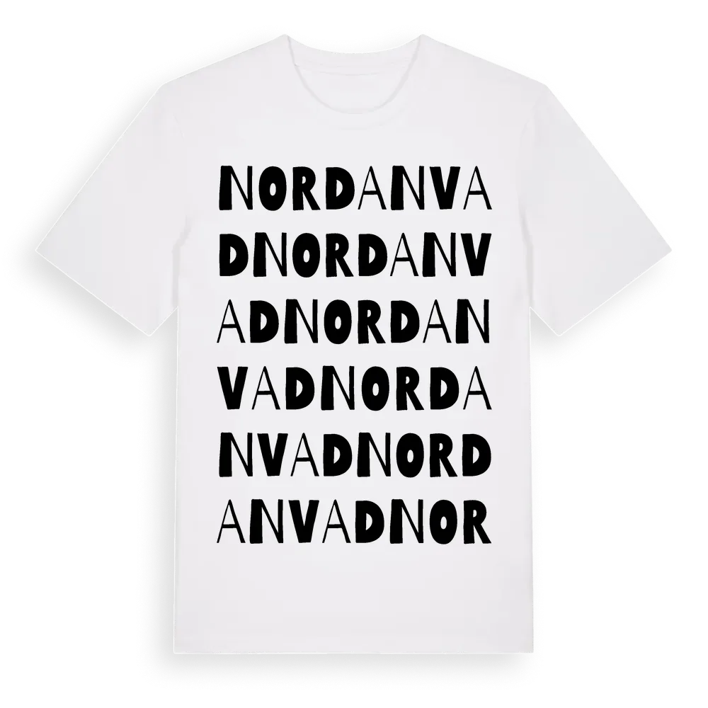 Nordanvad ordlek t-shirt är inspirerad av Nordanvad i Uppsala län, Sverige. Tröjan är designad för dig som har en speciell koppling till platsen – oavsett om du bor här, har rötterna här eller bara älskar Nordanvad.