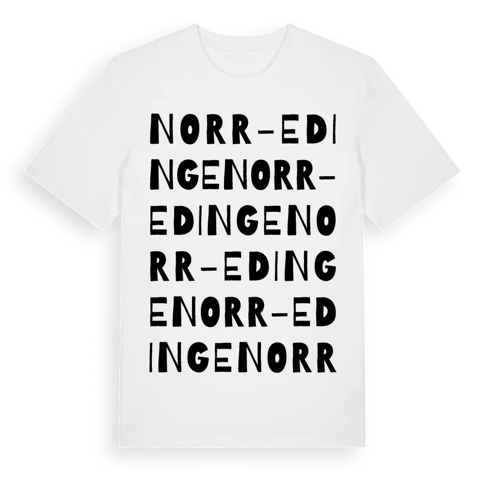 Norr-Edinge ordlek t-shirt är inspirerad av byn Norr-Edinge i Uppsala län, Sverige. Tröjan är designad för dig som har en speciell koppling till platsen – oavsett om du bor här, har rötterna här eller bara älskar Norr-Edinge.