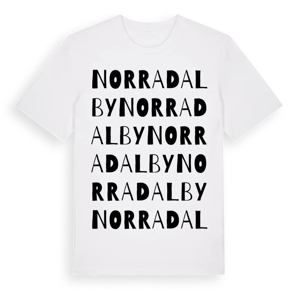Norra Dalby ordlek t-shirt är inspirerad av byn Norra Dalby i Uppsala län, Sverige. Tröjan är designad för dig som har en speciell koppling till platsen – oavsett om du bor här, har rötterna här eller bara älskar Norra Dalby.
