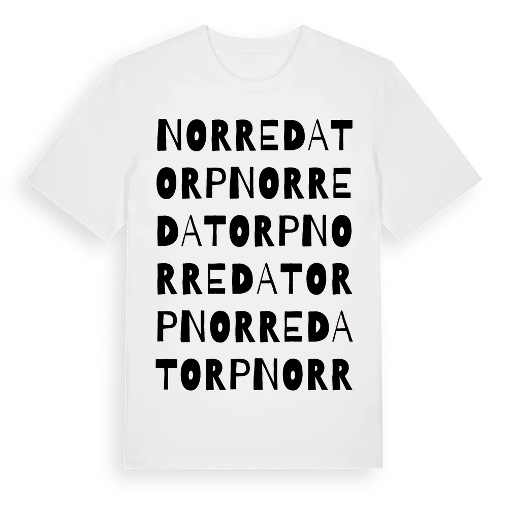 Norredatorp ordlek t-shirt är inspirerad av Norredatorp i Uppsala län, Sverige. Tröjan är designad för dig som har en speciell koppling till platsen – oavsett om du bor här, har rötterna här eller bara älskar Norredatorp.