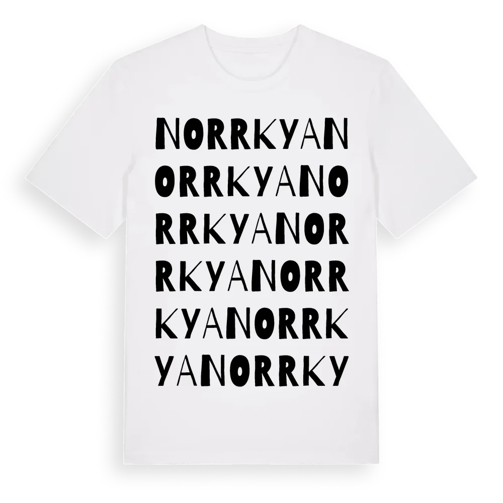 Norrkya ordlek t-shirt är inspirerad av Norrkya i Uppsala län, Sverige. Tröjan är designad för dig som har en speciell koppling till platsen – oavsett om du bor här, har rötterna här eller bara älskar Norrkya.