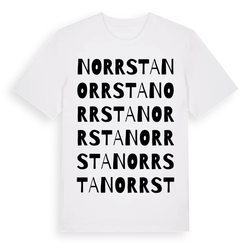 Norrsta ordlek t-shirt är inspirerad av Norrsta i Uppsala län, Sverige. Tröjan är designad för dig som har en speciell koppling till platsen – oavsett om du bor här, har rötterna här eller bara älskar Norrsta.
