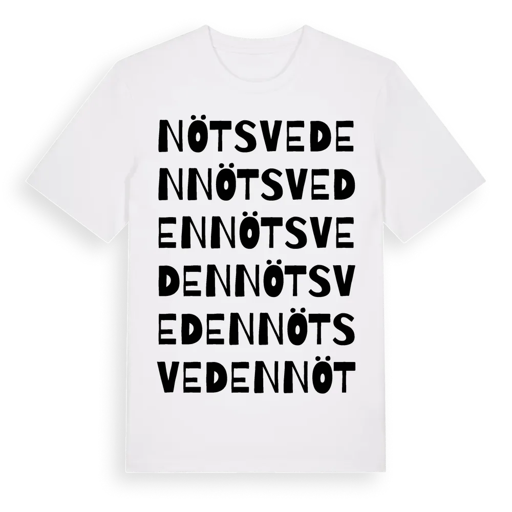 Nötsveden ordlek t-shirt är inspirerad av byn Nötsveden i Uppsala län, Sverige. Tröjan är designad för dig som har en speciell koppling till platsen – oavsett om du bor här, har rötterna här eller bara älskar Nötsveden.