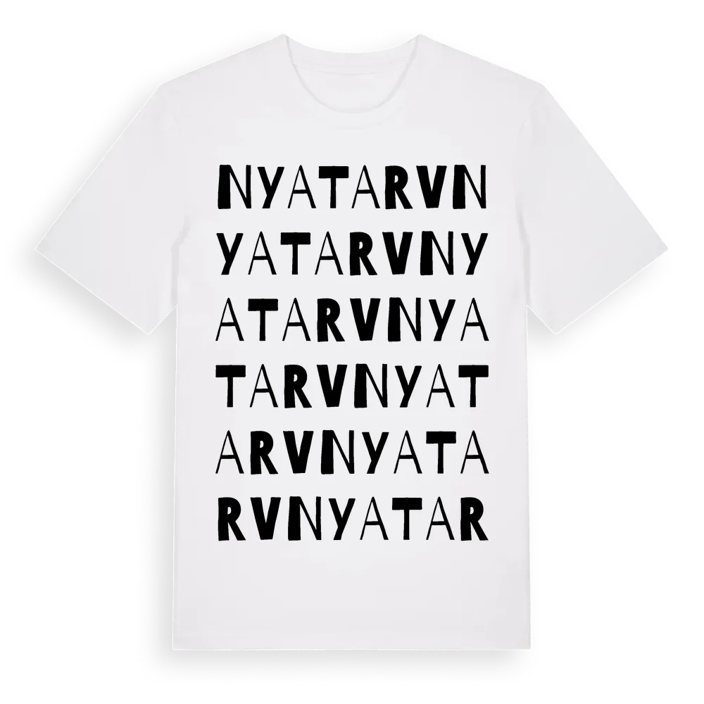 Nya Tarv ordlek t-shirt är inspirerad av byn Nya Tarv i Uppsala län, Sverige. Tröjan är designad för dig som har en speciell koppling till platsen – oavsett om du bor här, har rötterna här eller bara älskar Nya Tarv.