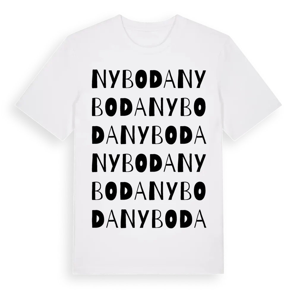Nyboda ordlek t-shirt är inspirerad av Nyboda i Uppsala län, Sverige. Tröjan är designad för dig som har en speciell koppling till platsen – oavsett om du bor här, har rötterna här eller bara älskar Nyboda.
