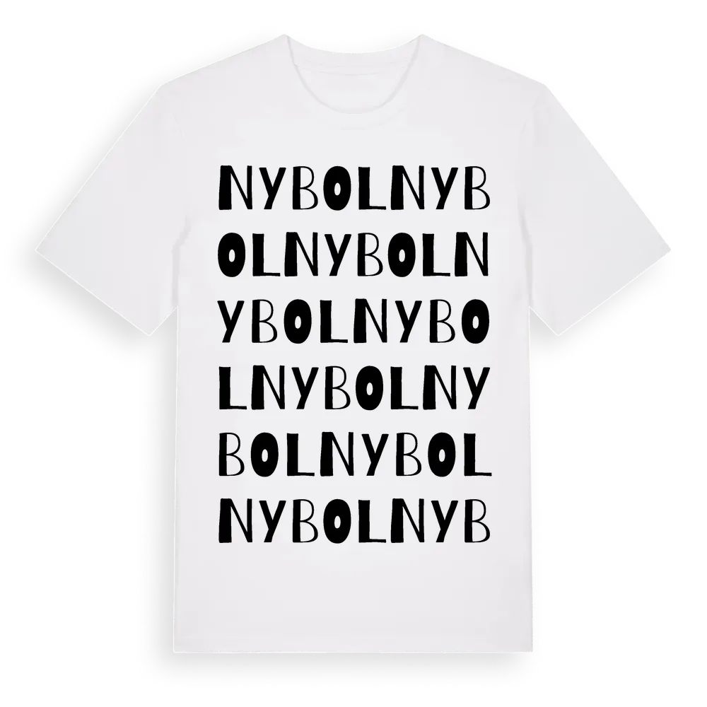 Nybol ordlek t-shirt är inspirerad av byn Nybol i Uppsala län, Sverige. Tröjan är designad för dig som har en speciell koppling till platsen – oavsett om du bor här, har rötterna här eller bara älskar Nybol.