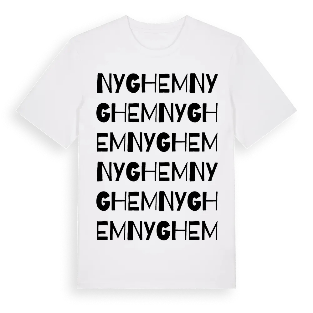 Nyghem ordlek t-shirt är inspirerad av Nyghem i Uppsala län, Sverige. Tröjan är designad för dig som har en speciell koppling till platsen – oavsett om du bor här, har rötterna här eller bara älskar Nyghem.