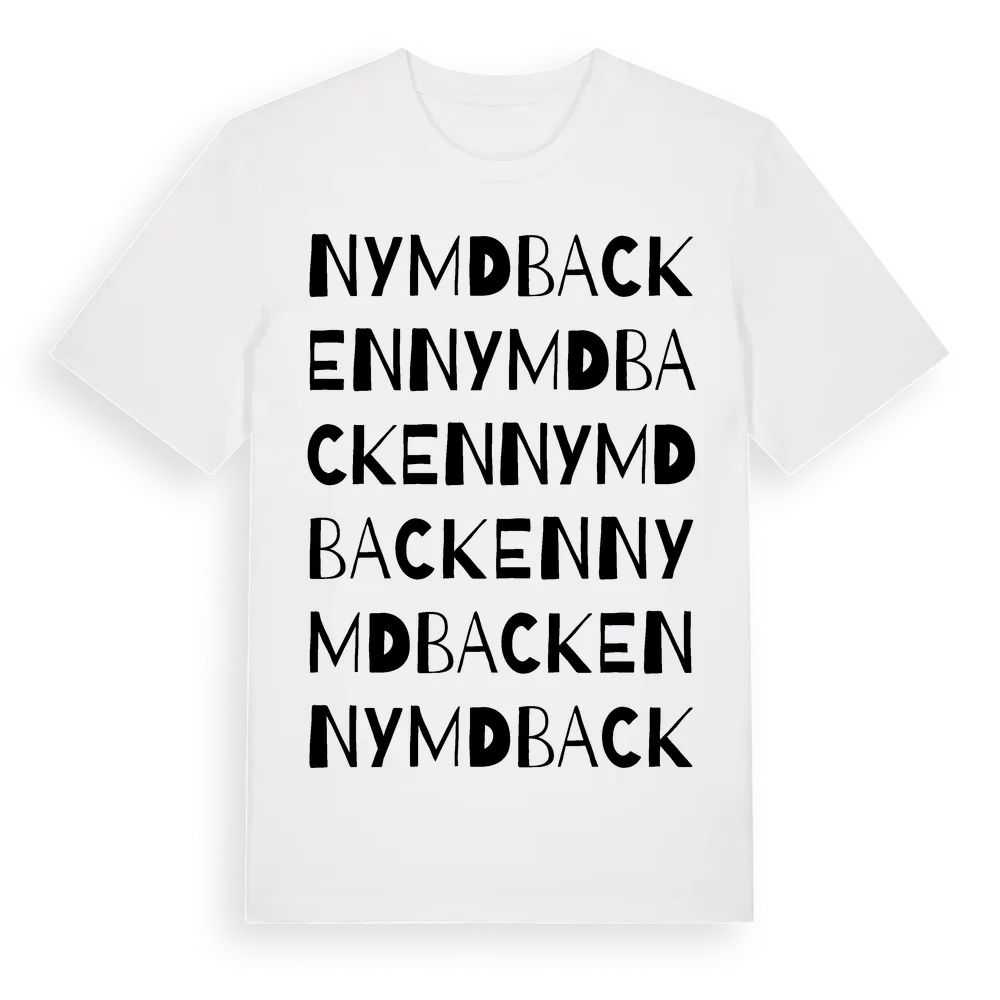 En ordlek byggd på Nymdbackens namn. Subtilt och klurig – ett motiv som bara de som verkligen känner platsen fullt ut förstår. Premium bomull, unisex – från Nymdbacken i Uppsala län.