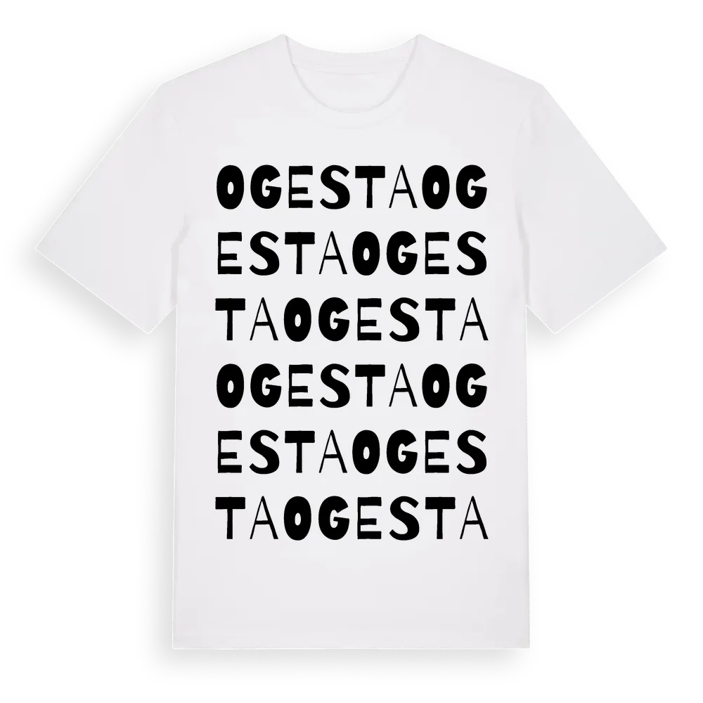 En ordlek byggd på Ogestas namn. Subtilt och klurig – ett motiv som bara de som verkligen känner platsen fullt ut förstår. Premium bomull, unisex – från byn Ogesta i Uppsala län.