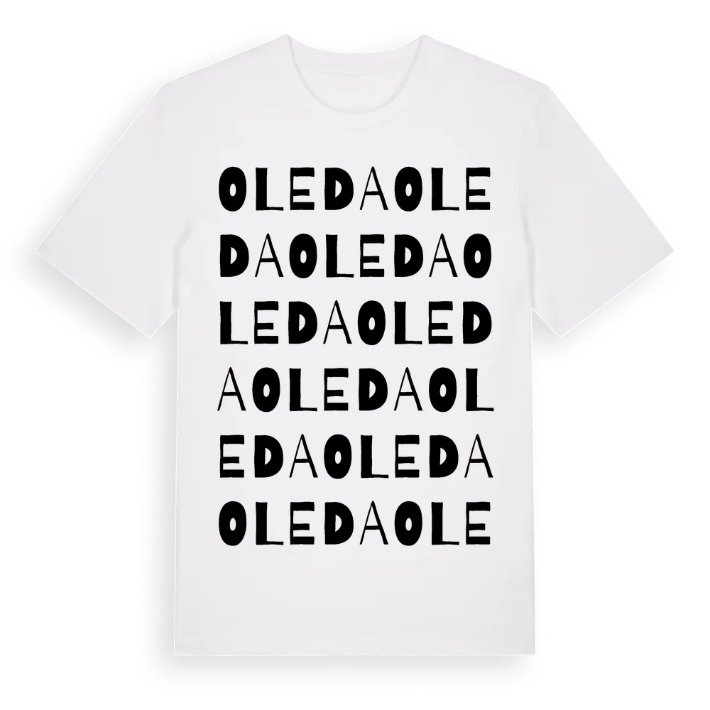 Oleda ordlek t-shirt är inspirerad av byn Oleda i Uppsala län, Sverige. Tröjan är designad för dig som har en speciell koppling till platsen – oavsett om du bor här, har rötterna här eller bara älskar Oleda.
