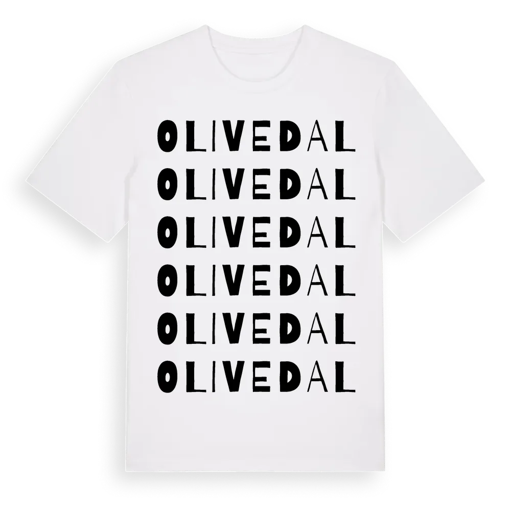 Olivedal ordlek t-shirt är inspirerad av Olivedal i Uppsala län, Sverige. Tröjan är designad för dig som har en speciell koppling till platsen – oavsett om du bor här, har rötterna här eller bara älskar Olivedal.