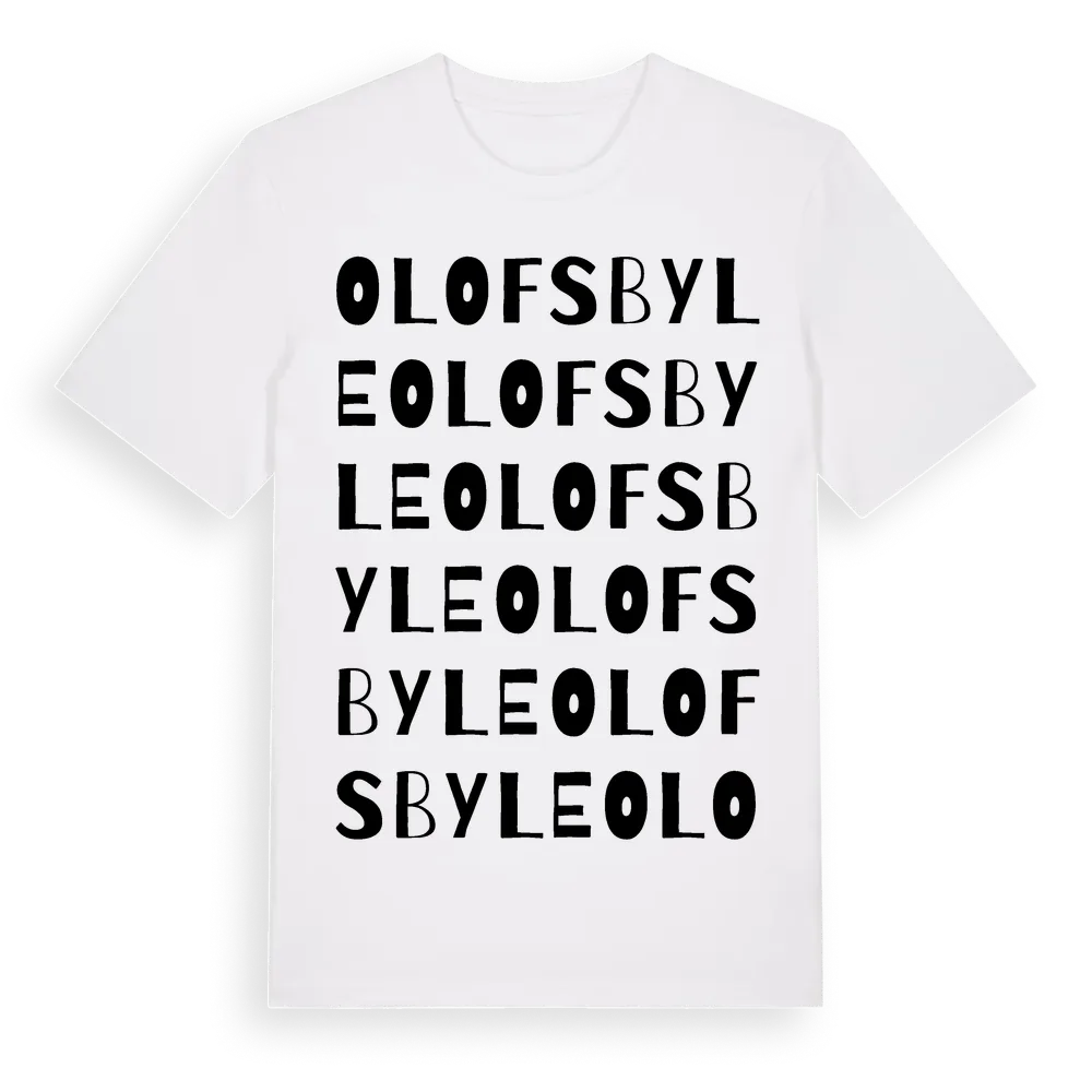 Olofsbyle ordlek t-shirt är inspirerad av Olofsbyle i Uppsala län, Sverige. Tröjan är designad för dig som har en speciell koppling till platsen – oavsett om du bor här, har rötterna här eller bara älskar Olofsbyle.