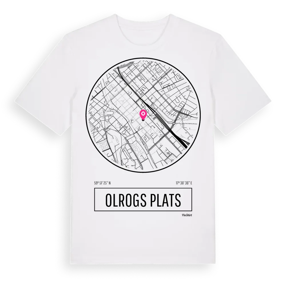 Olrogs Plats t-shirt är inspirerad av Olrogs Plats i Uppsala län, Sverige. Tröjan är designad för dig som har en speciell koppling till platsen – oavsett om du bor här, har rötterna här eller bara älskar Olrogs Plats.