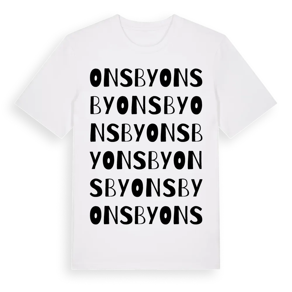 Onsby ordlek t-shirt är inspirerad av byn Onsby i Uppsala län, Sverige. Tröjan är designad för dig som har en speciell koppling till platsen – oavsett om du bor här, har rötterna här eller bara älskar Onsby.