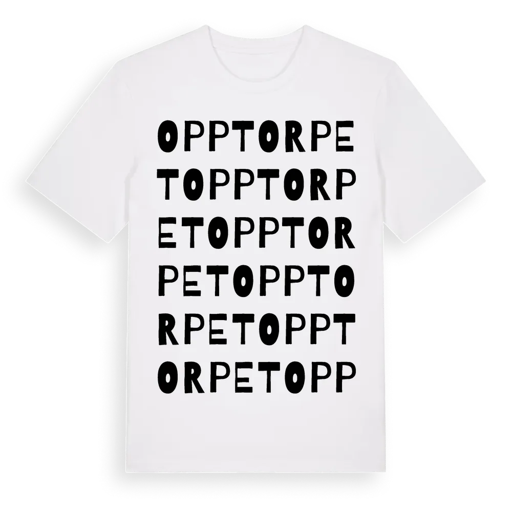 Opptorpet ordlek t-shirt är inspirerad av Opptorpet i Uppsala län, Sverige. Tröjan är designad för dig som har en speciell koppling till platsen – oavsett om du bor här, har rötterna här eller bara älskar Opptorpet.