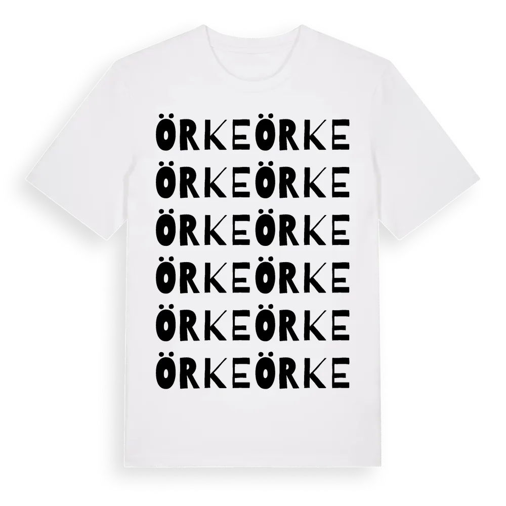 Örke ordlek t-shirt är inspirerad av byn Örke i Uppsala län, Sverige. Tröjan är designad för dig som har en speciell koppling till platsen – oavsett om du bor här, har rötterna här eller bara älskar Örke.