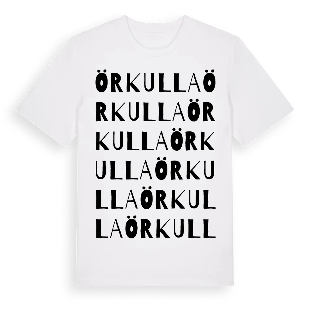 Örkulla ordlek t-shirt är inspirerad av Örkulla i Uppsala län, Sverige. Tröjan är designad för dig som har en speciell koppling till platsen – oavsett om du bor här, har rötterna här eller bara älskar Örkulla.