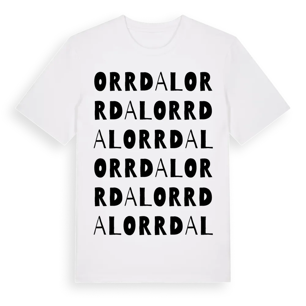 Orrdal ordlek t-shirt är inspirerad av Orrdal i Uppsala län, Sverige. Tröjan är designad för dig som har en speciell koppling till platsen – oavsett om du bor här, har rötterna här eller bara älskar Orrdal.