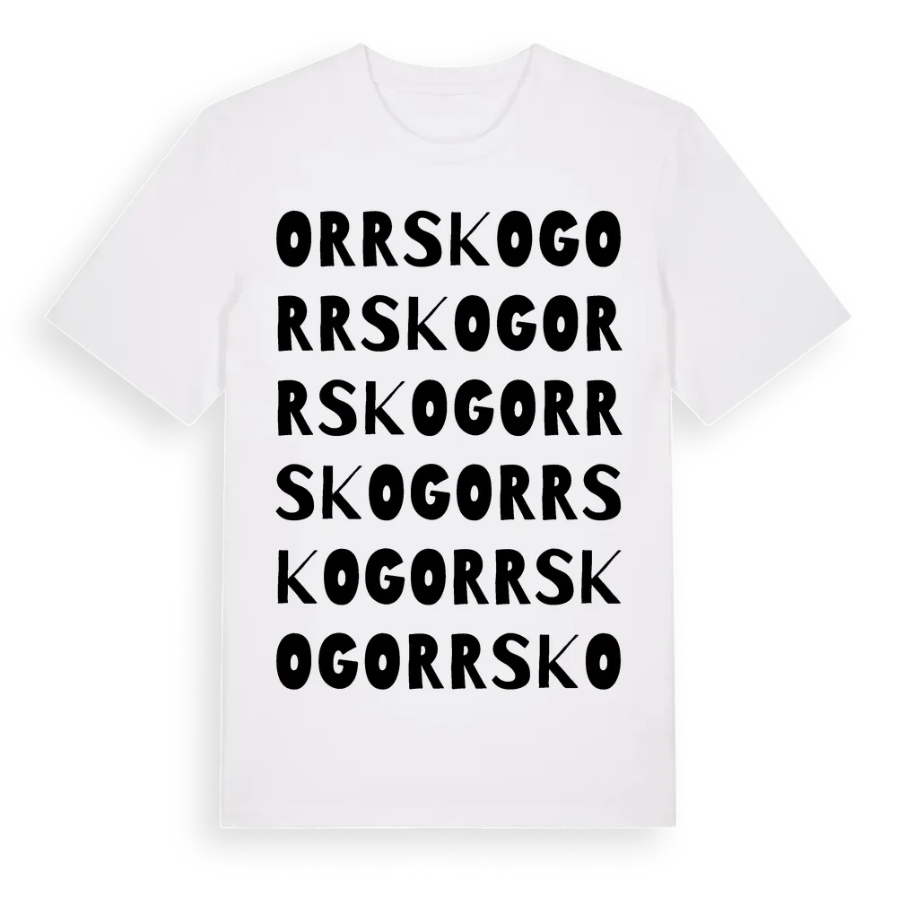 Orrskog ordlek t-shirt är inspirerad av byn Orrskog i Uppsala län, Sverige. Tröjan är designad för dig som har en speciell koppling till platsen – oavsett om du bor här, har rötterna här eller bara älskar Orrskog.