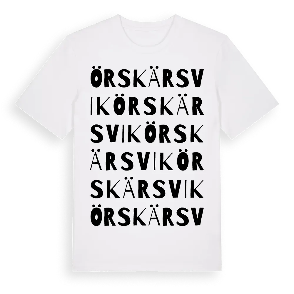 Örskärsvik ordlek t-shirt är inspirerad av Örskärsvik i Uppsala län, Sverige. Tröjan är designad för dig som har en speciell koppling till platsen – oavsett om du bor här, har rötterna här eller bara älskar Örskärsvik.